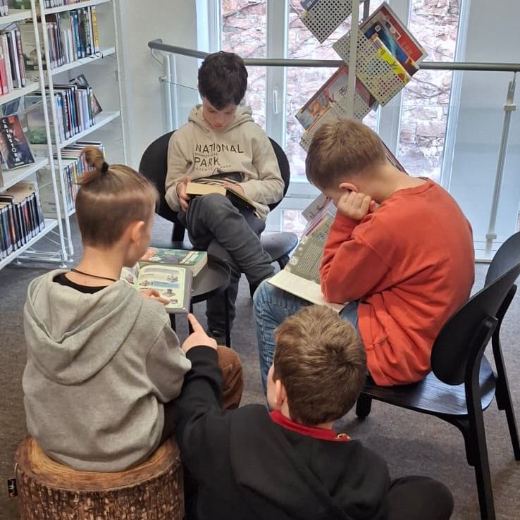 So war dann auch jeder Gruppe die volle Punktzahl sicher und am Ende wurde es auch sehr ruhig als die Schülerinnen und Schüler sich in verschiedene Leseecken zurückzogen, um dort in den Büchern zu schmökern, die sie sich spontan oder aus Interesse aus den Regalen genommen hatten.